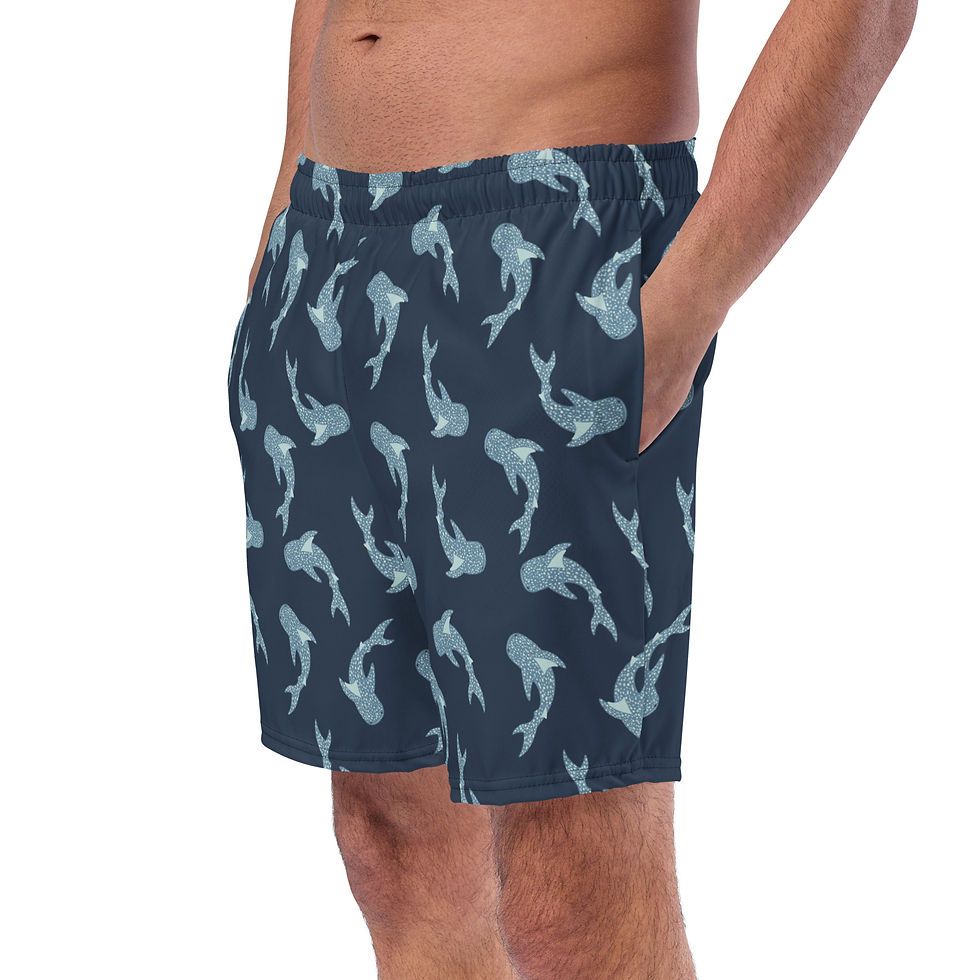 Unique designs for men and women. For men, eco-friendly swim trunks. For women, eco-friendly recycled polyester high-waisted bikinis and cheeky low scooped back one-piece swimsuits.